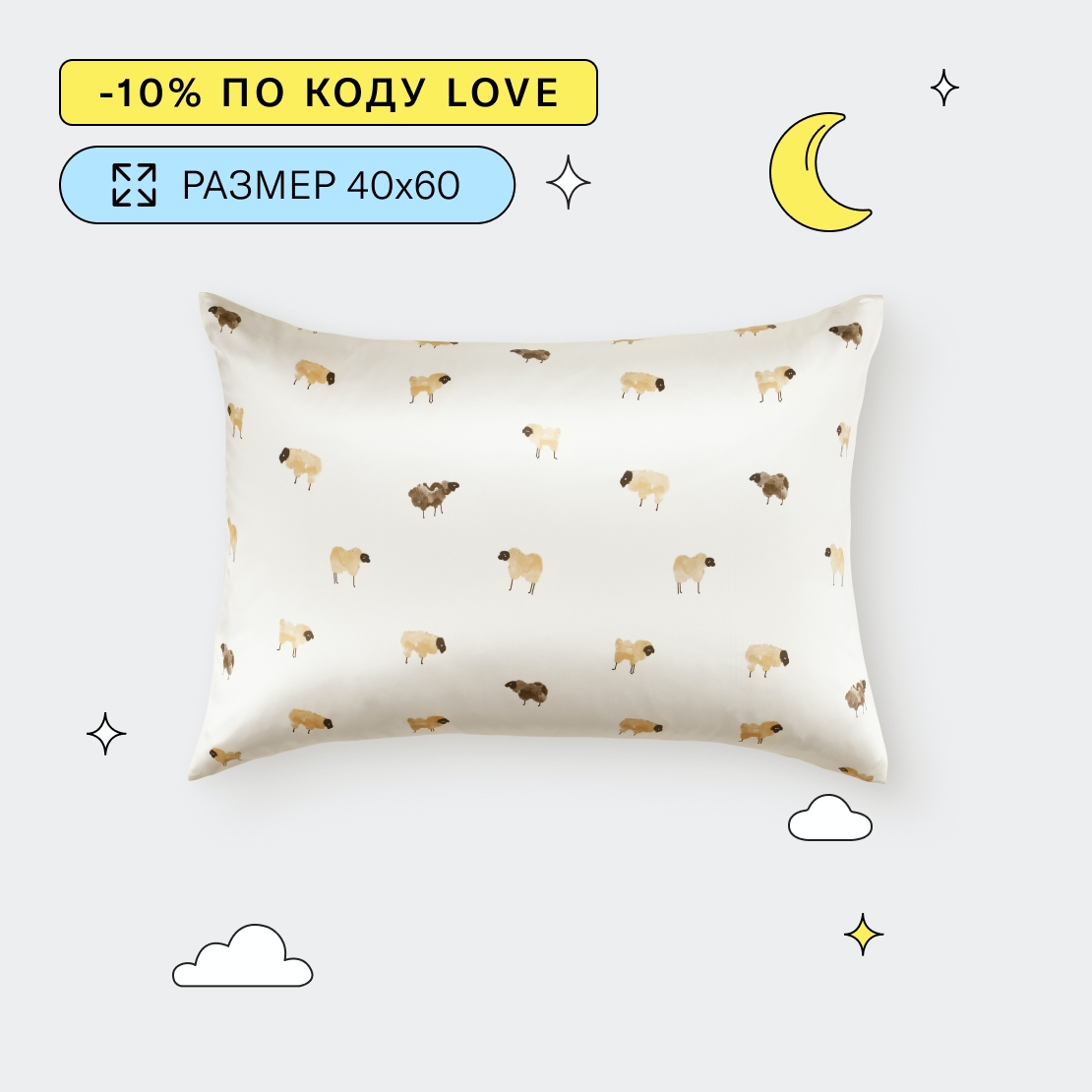 Наволочка 50х70 из натурального шёлка, принт овечки